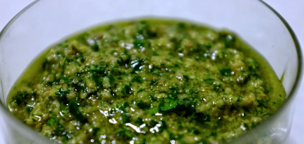 Dosi: 60 grammi di prezzemolo, qualche foglia di sedano fresco, 1 spicchio d'aglio, 4 filetti di acciughe, 1 cucchiaino di capperi, un cucchiaio di aceto bianco, 100 grammi di olio, pepe. (Facoltativi: due tuorli di uovo sodo)